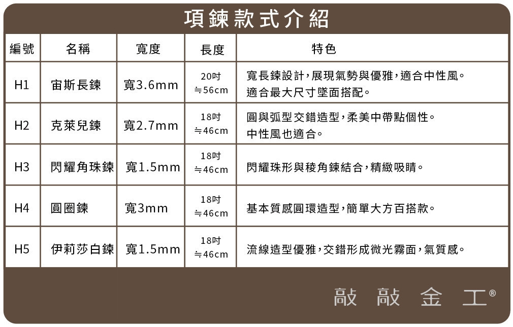 搭配 基本款鍊/ (圖下)墜面XL尺寸,搭配 H2 克萊兒鍊